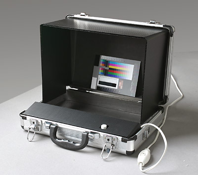 | ●標準カラービュアー「Criterion」は、スタジオや処理環境の作業スペースを考慮した省スペース設計。たたむと薄型のアルミアタッシュになり、持ち運びもラクラク。 ●四つ切りOK! W360mm×H310mmの原稿までセット出来ます。 ●使用している光源は、Ra99と言う非常に自然光に近い高演色な、10Wビュアー用EDL蛍光灯(演色AAA)を使用し、拡散カバーを通って放たれる光の色温度は約5000度ケルビン。これぞ標準! |